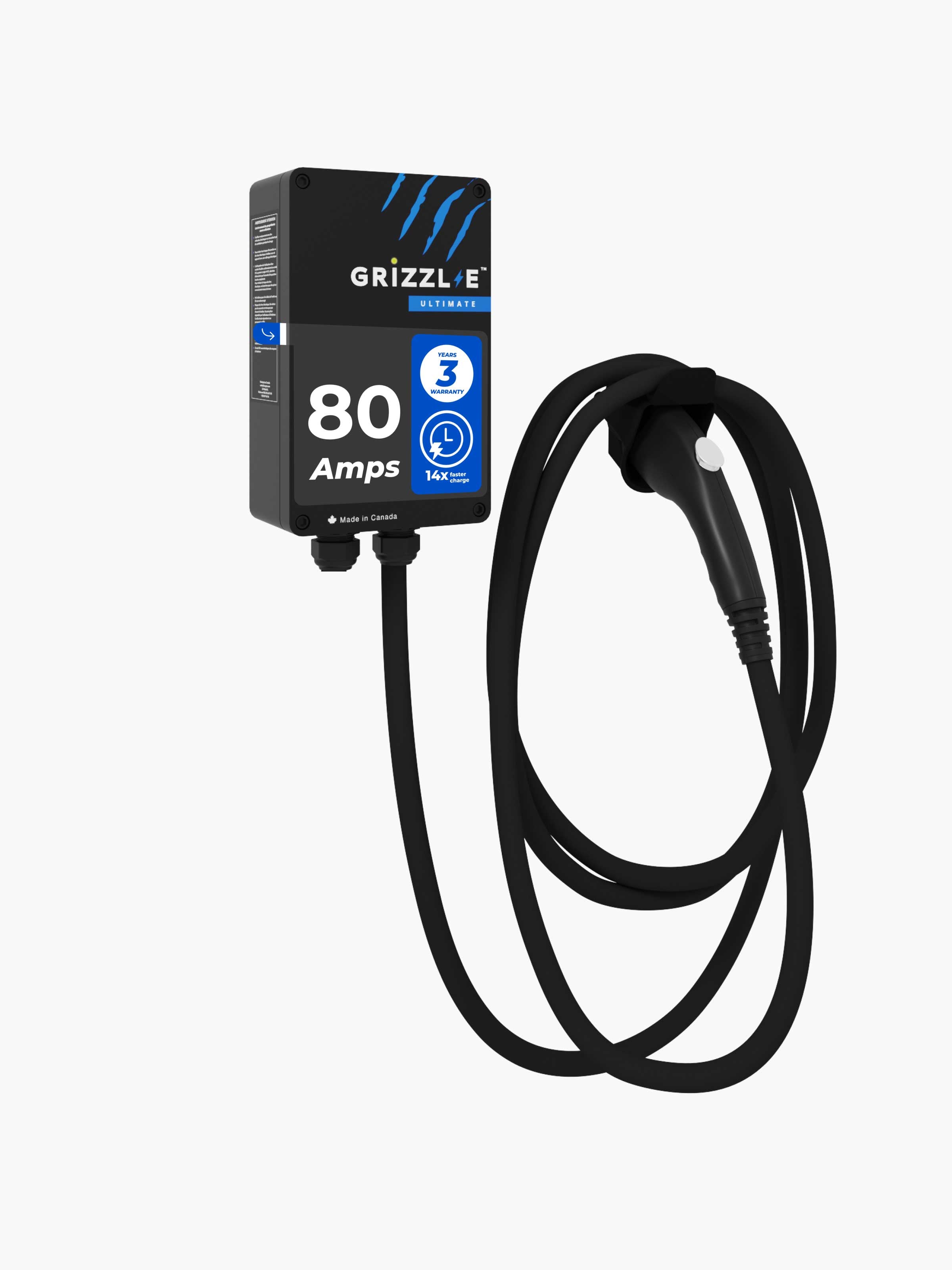 The Grizzl-E 80A is a level 2 home charging station which allows you to charge your electric or plug-in hybrid car up to 2 times faster than with standard level 2 chargers and up to 15x faster than a level 1 charger.